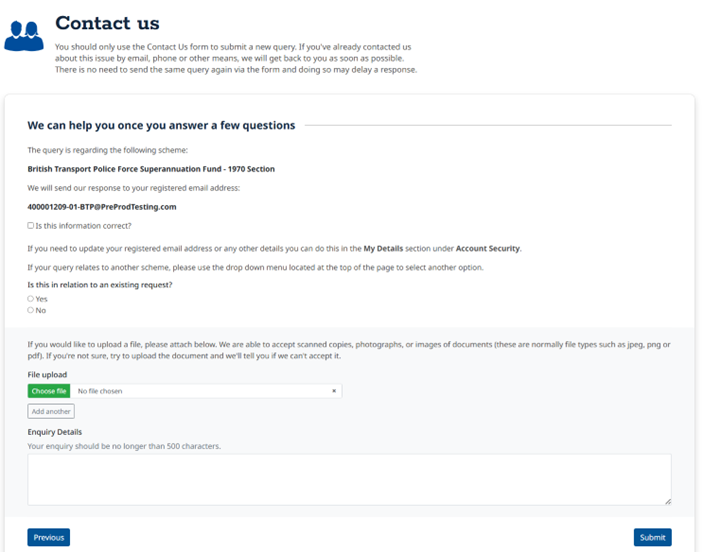 If you have a question about your pension, or you need to send us some information, you can now get in touch with us by completing a contact form in your myFund account.